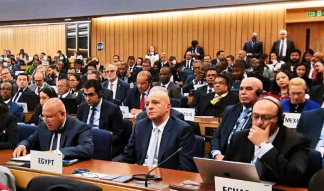 الفريق كامل الوزير يلقي كلمة مصر بالجمعية العامة للمنظمة البحرية الدولية ( IMO ) بلندن