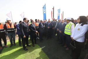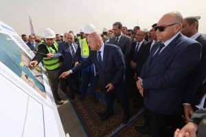 ثم توجه الوزير لمشروع محطة تحيا مصر 2 متعددة الأغراض حيث تفقد مشروع حاجز الأمواج الغربي بإجمالي أطوال 5425 م والذى سيساعد الميناء في تقليل معدلات الإطماء للممر الملاحي والأرصفة كما يساهم في خلق مساحة أرضية حوالي 2.2 مليون م2 يتم إستغلالها حالياً في إقامة مشروع محطة تحيا مصر 2 متعددة الأغراض والتي سيصل أطوال أرصفتها إلي حوالي 3320 م وعمق 18 م كما تفقد أعمال الردم الجاري تنفيذها حالياً بالمحطة و التي تم الانتهاء من حوالي 45 % منها .
