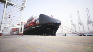 شهد الفريق مهندس كامل الوزير وزير النقل إنطلاق التشغيل التجريبي التجاري لمحطة حاويات ” تحيا مصر 1″ بميناء دمياط باستقبال سفينة الحاويات العملاقة ESSEN EXPRESS التابعة للخط الملاحي العالمي هاباج لويد والقادمة من ميناء أمبرلي بتركيا والتي يبلغ طولها 366.5 م ، و بعرض 48 م ، وغاطس حوالى 15.5 م و تصل طاقتها الإستيعابية حوالي 13177 ( TEU ) والتي تصل حمولتها الإجمالية حوالي 143262 طن وذلك بحضور الدكتور أيمن الشهابي محافظ دمياط ،والنائب وحيد قرقر رئيس لجنة النقل والمواصلات، و السادة اعضاء لجنة النقل و المواصلات بمجلس النواب ، و السادة نواب مجلسي النواب و الشيوخ بمحافظة دمياط ، و اللواء بحرى دكتور نهاد شاهين نائب وزير النقل للنقل البحري ، و السادة رؤساء قطاع النقل البحري وهيئات الموانئ البحرية ، و قيادات هيئة ميناء دمياط ، السيد توم إيكلمان .. الرئيس التنفيذي لمجموعة يوروجيت والسيد خوان بابلو ريتشاردز .. مدير منطقة جنوب أوروبا و قيادات تحالف التشغيل العالمي شركة Damietta Alliance لمحطات الحاويات و الذي يضم كبرى الشركات الدولية الرائدة في تشغيل محطات الحاويات والخطوط الملاحية ( يوروجيت الألمانية، كونتشيب الإيطالية، والخط الملاحي العالمي هاباج لويد ) إلى جانب حضور عدد من الملحقين التجاريين لعدد من الدول الأوروبية لدى مصر، وممثلي كبري الخطوط الملاحية العالمية ، وقيادات وزارة النقل والمجتمع الملاحى .