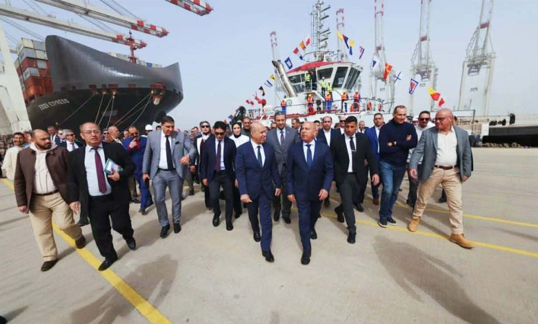 وزير النقل يشهد التشغيل التجريبى التجارى لمحطة تحيا مصر للحاويات بميناء دمياط بحضور المحافظ